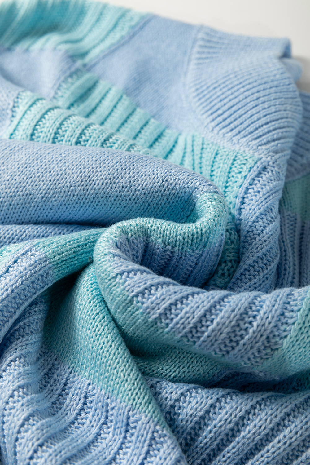 Light Blue Checkered Color Block Sweater