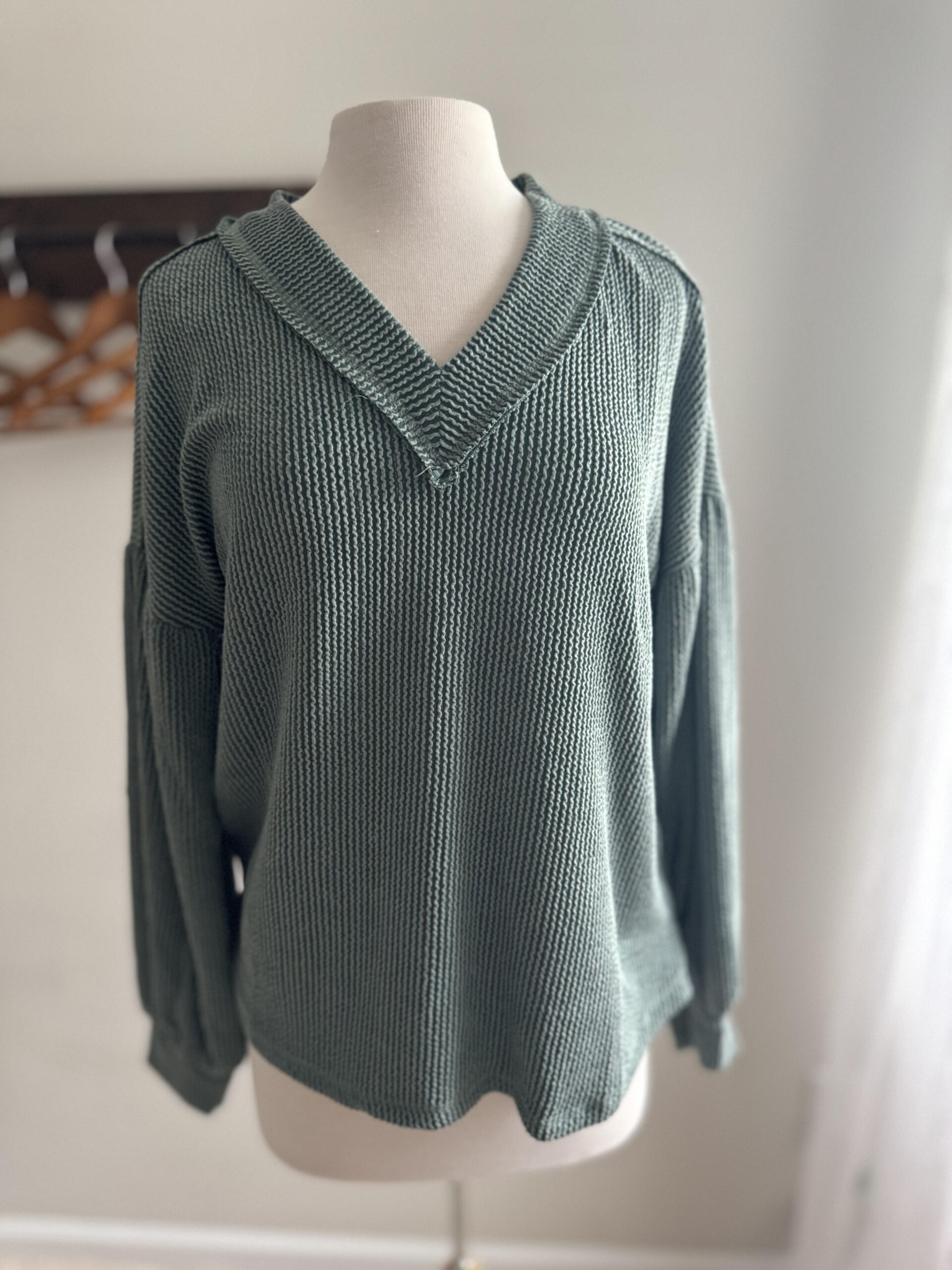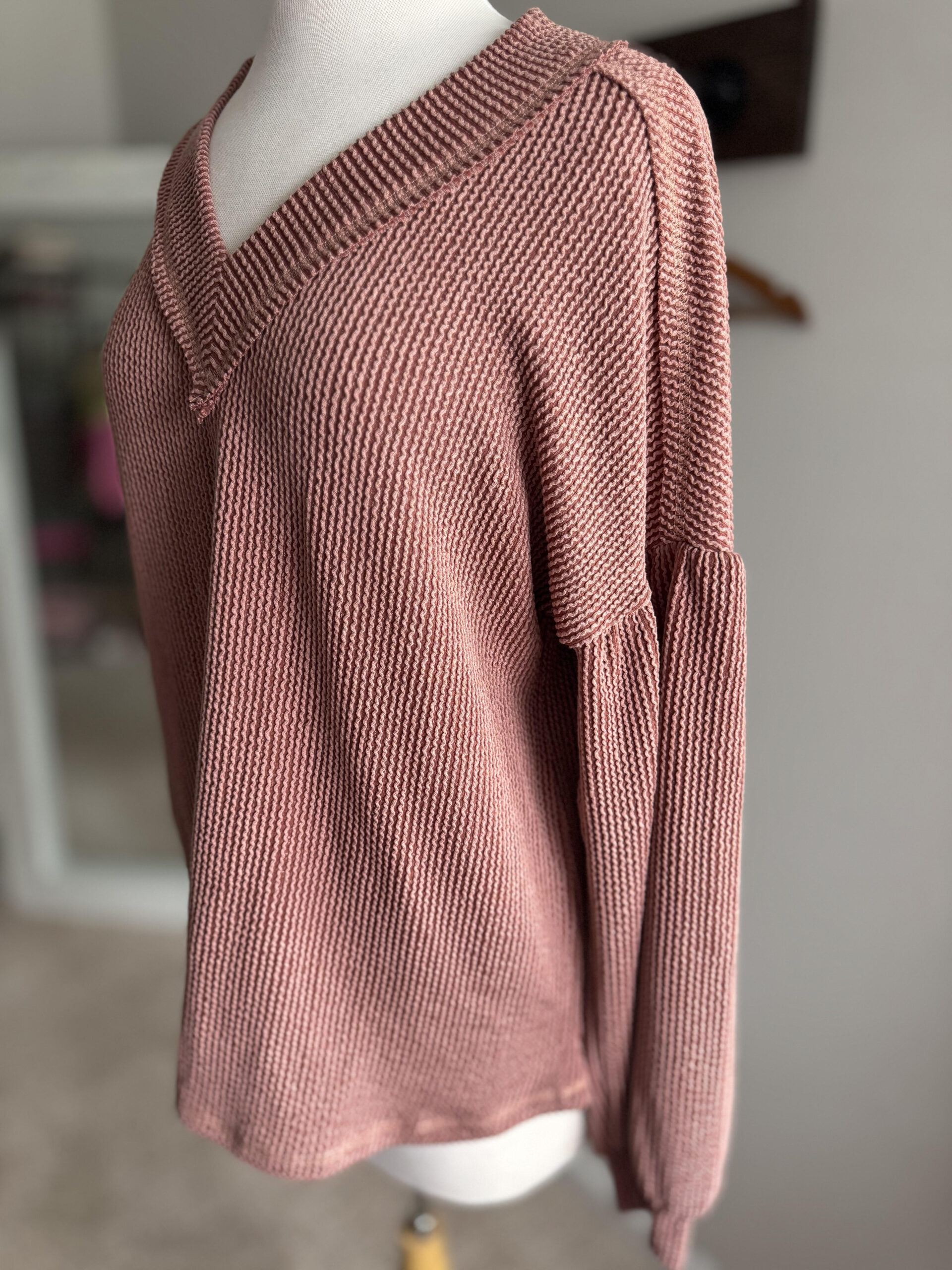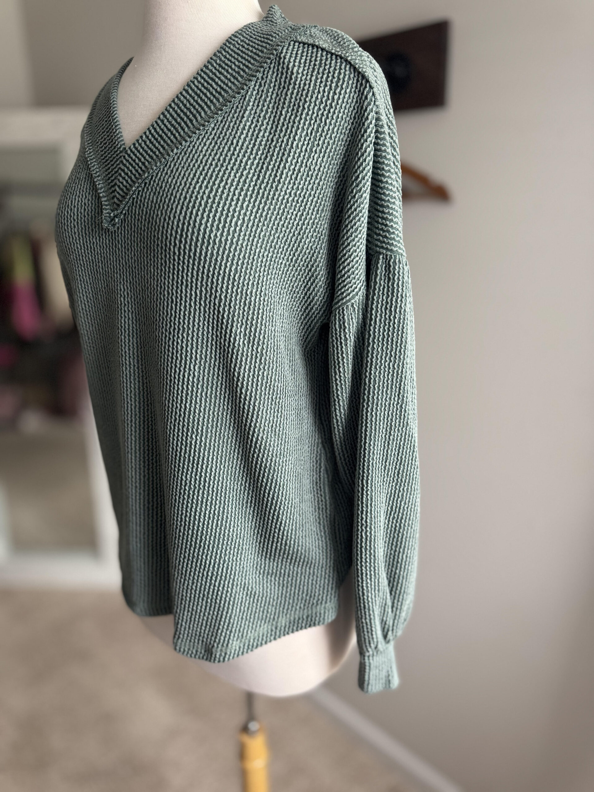 Simple yet stylish, the Ribbed V-Neck Long Sleeve Top is a versatile staple for your wardrobe. Featuring a flattering V-neckline and a ribbed texture, this top adds subtle detail to any look. The longer back hem offers extra coverage, making it perfect for pairing with leggings or jeans. With its comfortable fit and timeless design, this top is ideal for layering or wearing on its own.